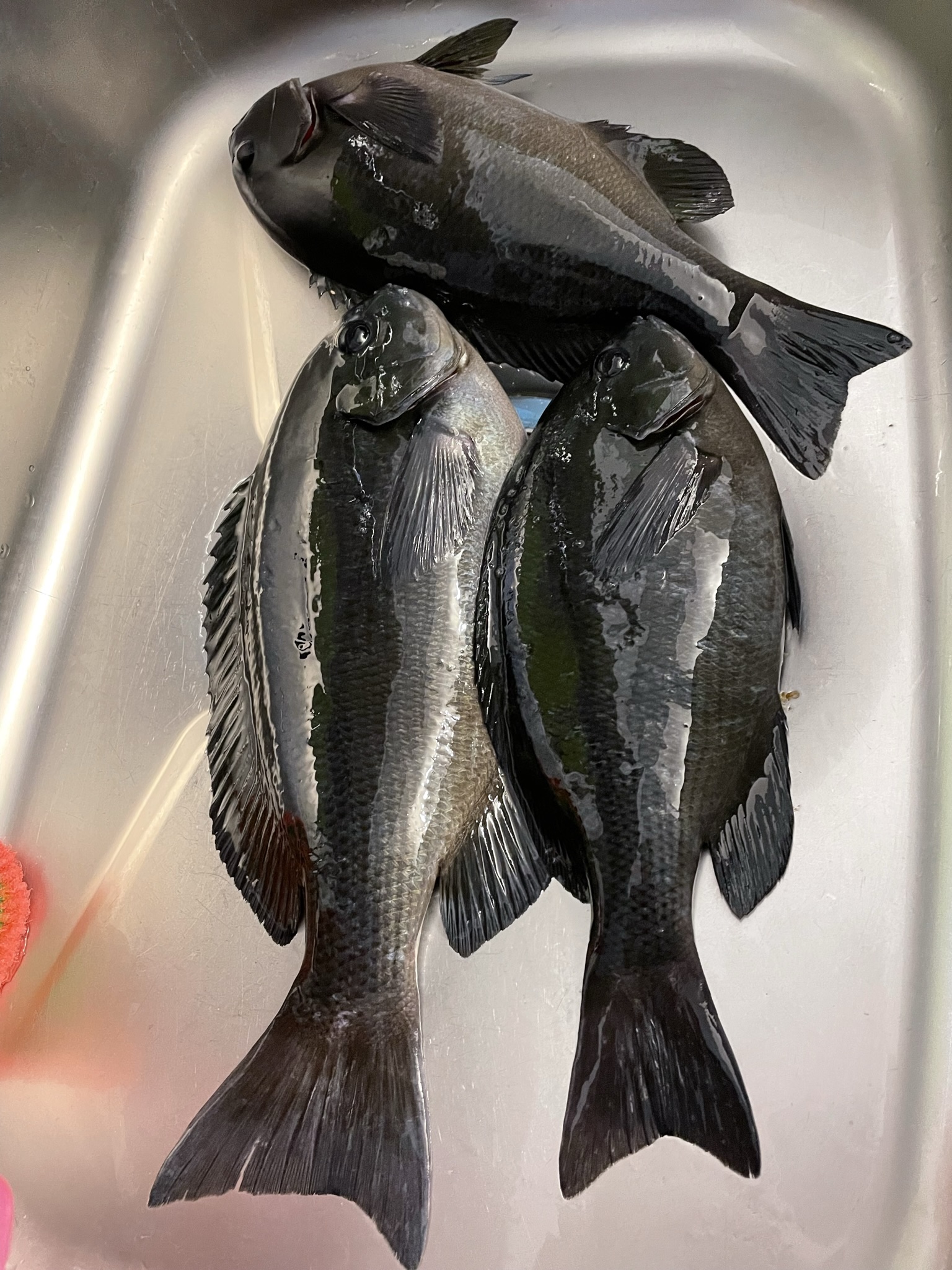 20 중후반의 긴 꼬리 벵에돔, 30 정도의 줄무늬전갱이, 독가시치